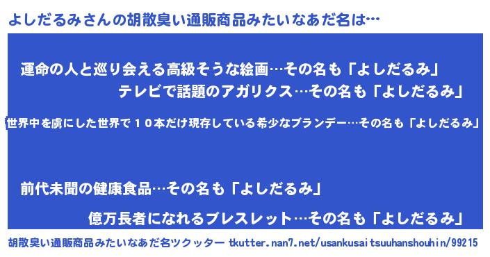 よしだるみさんの胡散臭い通販商品みたいなあだ名をツクッター!