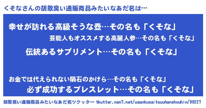 | ヘコむあだ名 | 『くそを』『レバニラ』『くそにゅー』 |