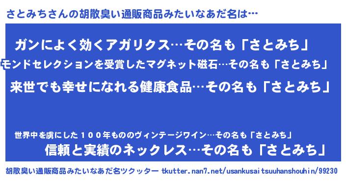| 男性向けラノベタイトル風あだ名 | 『さとみちという概念が存在しない退屈な世界 』 |