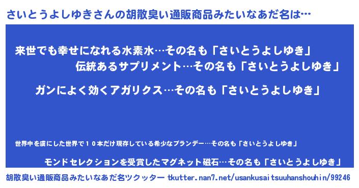 | ヘコむあだ名 | 『さいとうよしゆき(爆)』『さいっちょ』 |