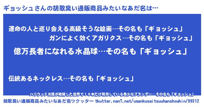 | 男性向けラノベタイトル風あだ名 | 『ギョッシュアートオンライン』 |