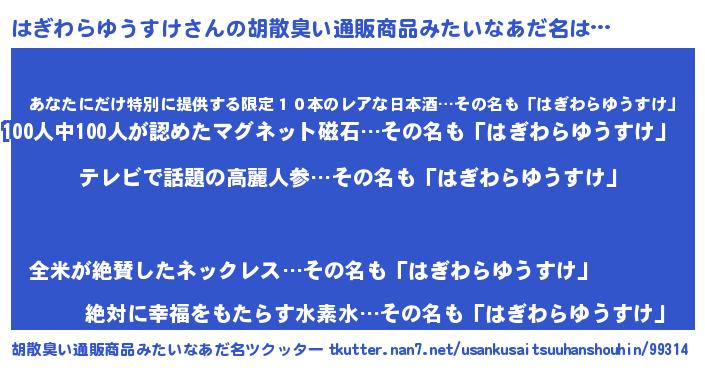 | ヘコむあだ名 | 『はぎわらゆうすけ(笑)』『はぎ太郎』 |