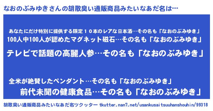 | 意味不明あだ名 | 『自称なおのぶみゆき』 |