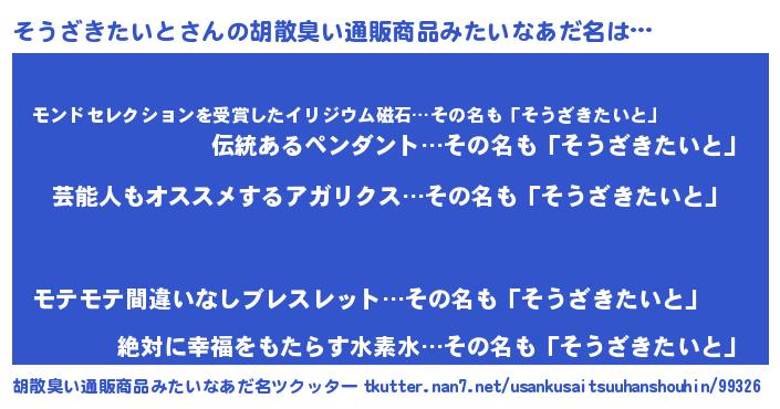 | ヘコむあだ名 | 『そうざきたいと(苦笑)』『そうっぺ』 |
