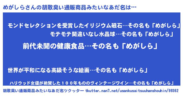 | ヘコむあだ名 | 『めがしら(爆)』『めがにゅー』 |
