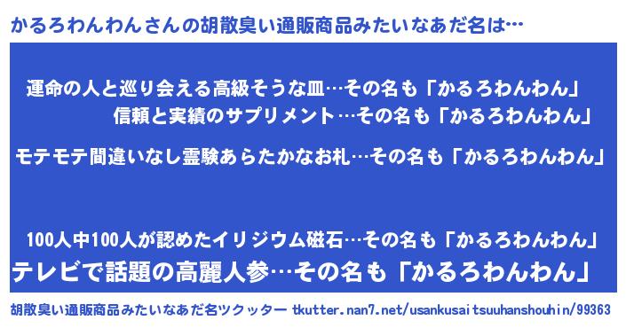 | 意味不明あだ名 | 『ペロリンかるろわんわん』 |