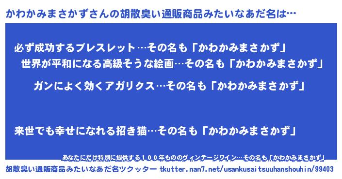 | 意味不明あだ名 | 『自称かわかみまさかず』 |