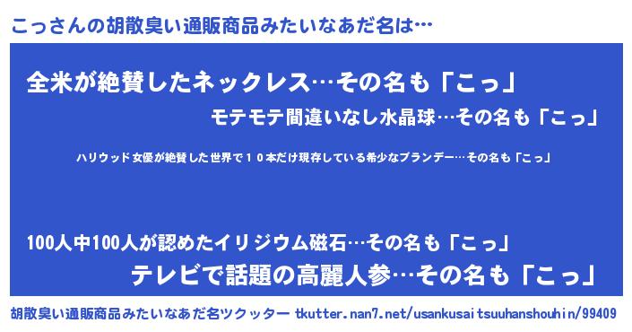 | ヘコむあだ名 | 『こっぷりん』『こっにゅー』『豆乳』 |