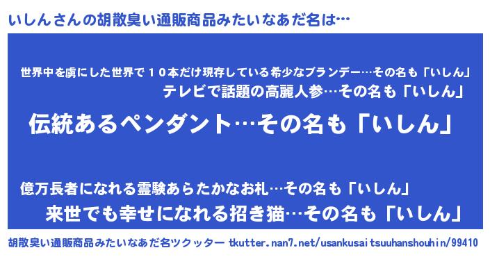 | 男性向けラノベタイトル風あだ名 | 『いしんに滅ぼされるだけの簡単なお仕事です』 |