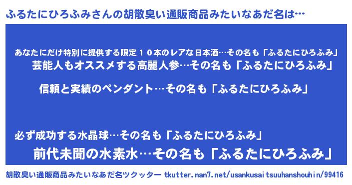 | ヘコむあだ名 | 『ふるっちょ』『ふるたにひろふみ(笑)』 |