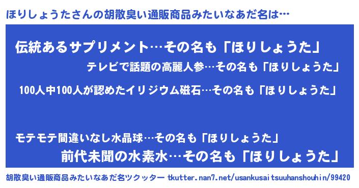 | ヒーロー風カッコイイあだ名 | 『正義の使者ほりしょうた』 |