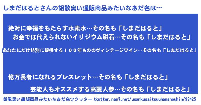 | 意味不明あだ名 | 『住所不定無職しまだはると(2歳)』 |
