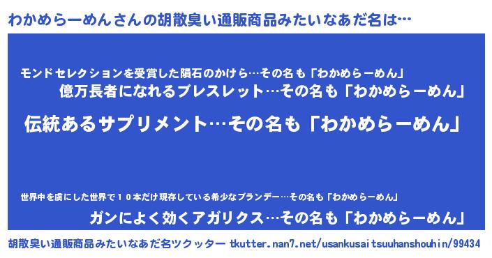 | 伝説のあだ名 | 『解き放たれた魔法使いわかめらーめん』 |