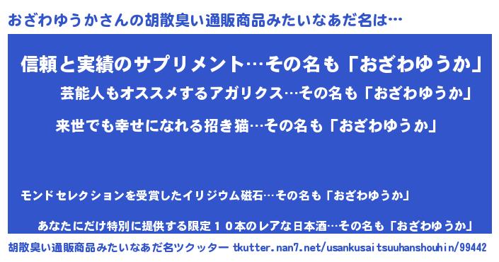 | ヘコむあだ名 | 『おざわゆうか(小並感)』『おざを』 |
