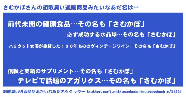 | ヘコむあだ名 | 『さむかぽ(笑)』『さむにゅー』 |