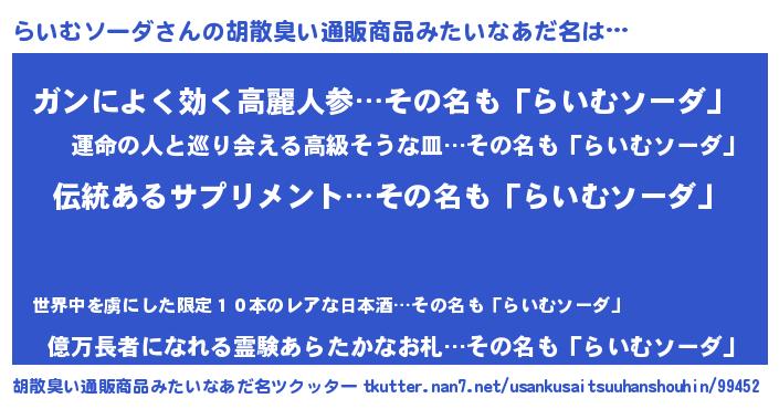 | 意味不明あだ名 | 『とにかく怪しいらいむソーダ』 |