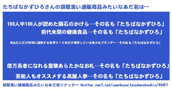 | ヘコむあだ名 | 『たちばなかずひろ(苦笑)』『たちにー』 |