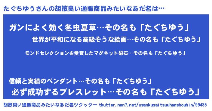 | 伝説のあだ名 | 『救世主となる技術者たぐちゆう』 |