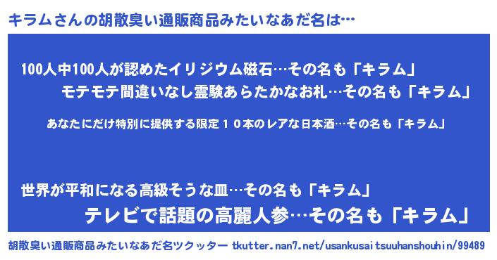 | ヘコむあだ名 | 『キラにゅー』『牛乳』『キラっぺ』 |
