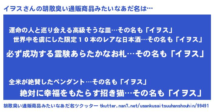 | ヒーロー風カッコイイあだ名 | 『スーパーイヲス』『ウルトライヲスマン』 |