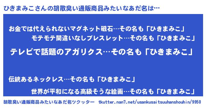 | 意味不明あだ名 | 『自称ひきまみこ』『ペロリンひきまみこ』 |