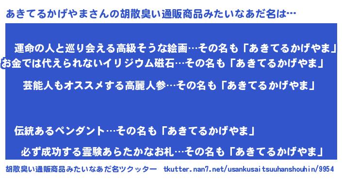 | 意味不明あだ名 | 『自称あきてるかげやま』 |