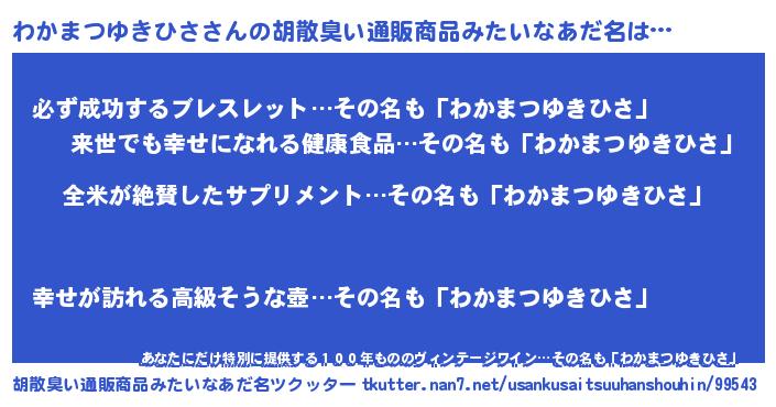 | 意味不明あだ名 | 『とにかく怪しいわかまつゆきひさ』 |