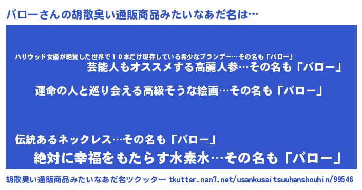 | ヘコむあだ名 | 『酢こんぶ』『バロー(遠い目)』 |