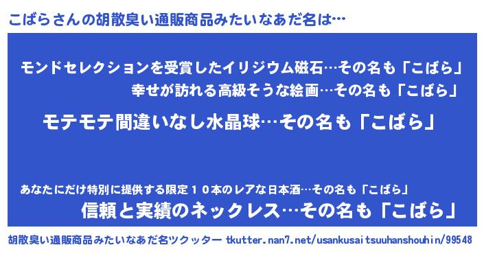 | ヒーロー風カッコイイあだ名 | 『スーパーコバラ』『慈愛の使者こばら』 |