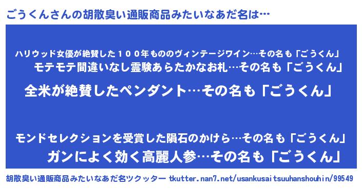 | 意味不明あだ名 | 『とにかく怪しいごうくん』 |