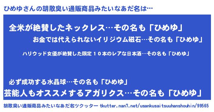 | 意味不明あだ名 | 『住所不定無職ひめゆ(14歳)』『自称ひめゆ』 |