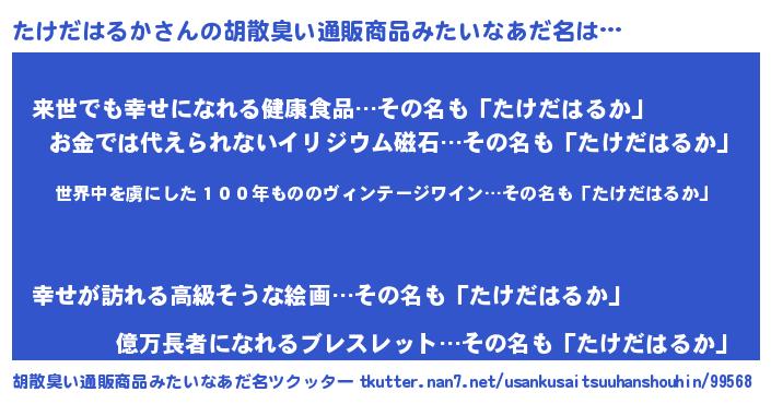 | ヘコむあだ名 | 『たけだはるか(小並感)』『たけにゅー』 |