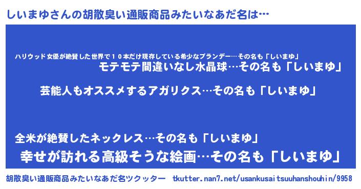 | 女子向けラノベタイトル風あだ名 | 『闇のしいまゆ』『しいまゆの雑貨屋さん』 |