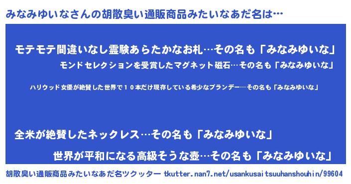 | 伝説のあだ名 | 『伝説のスナイパーみなみゆいな』 |