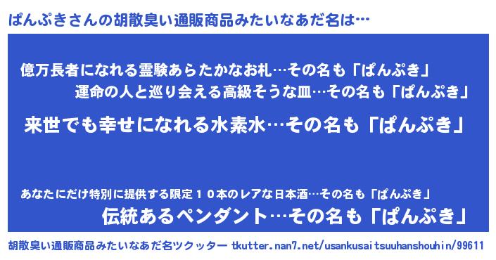 | ヘコむあだ名 | 『ぱんぷき(震え声)』『ぱんもー』 |