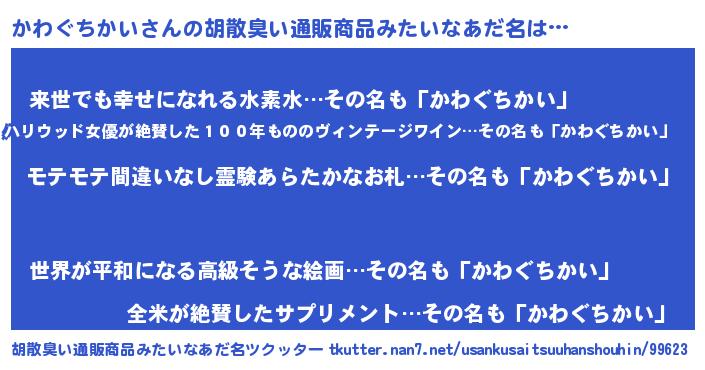 | ヘコむあだ名 | 『かわっふぃ~』『かわぐちかい(苦笑)』 |