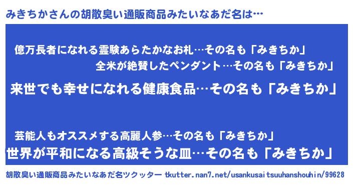 | 意味不明あだ名 | 『永久保存みきちか』『ペロリンみきちか』 |