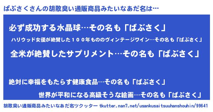 | 意味不明あだ名 | 『とにかく怪しいばぶさく』 |