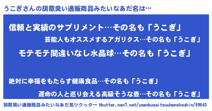 | ヘコむあだ名 | 『うこにゅー』『うこお』『レバニラ』 |