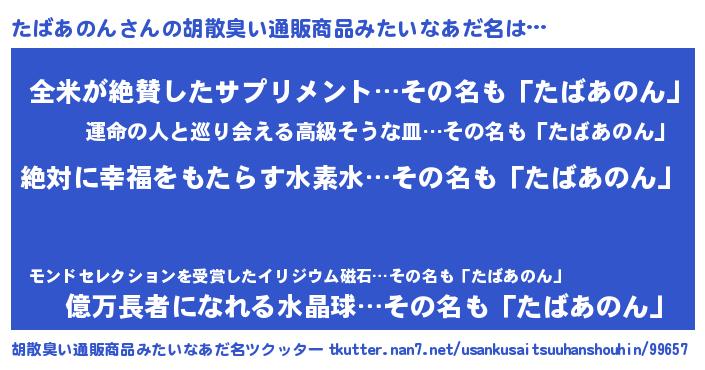 | ヘコむあだ名 | 『たばあのん(震え声)』『たばを』 |