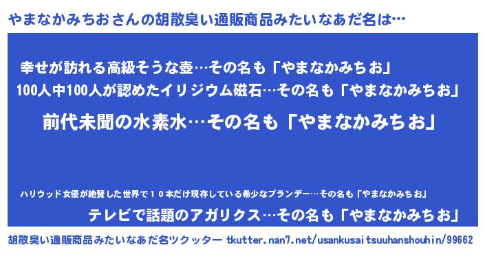 | 欧米人風あだ名 | 『ダルビッシュやまなかみちお』 |