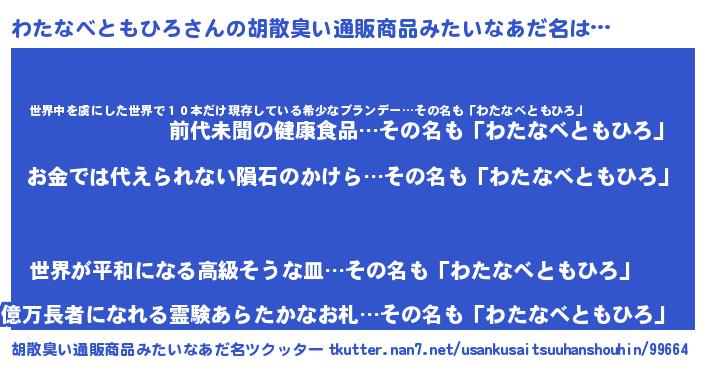 | ヘコむあだ名 | 『わたもー』『わたなべともひろ(爆)』 |