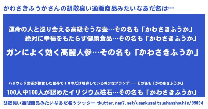 | ヒーロー風カッコイイあだ名 | 『ウルトラ戦士カワサキフウカ』 |