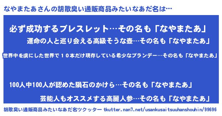 | 意味不明あだ名 | 『住所不定無職なやまたあ(95歳)』 |