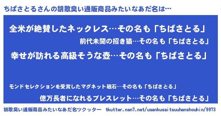 | 女子向けラノベタイトル風あだ名 | 『ちばさとるの雑貨屋さん』 |