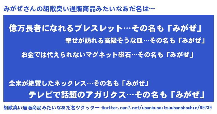 | 欧米人風あだ名 | 『ダニエルみがぜ』『マイケルみがぜ』 |