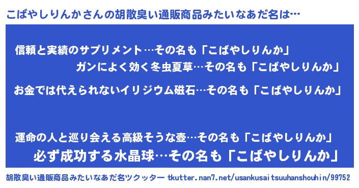 | 意味不明あだ名 | 『眠気覚ましガムこばやしりんか味』 |