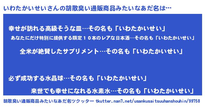 | 意味不明あだ名 | 『とにかく怪しいいわたかいせい』 |
