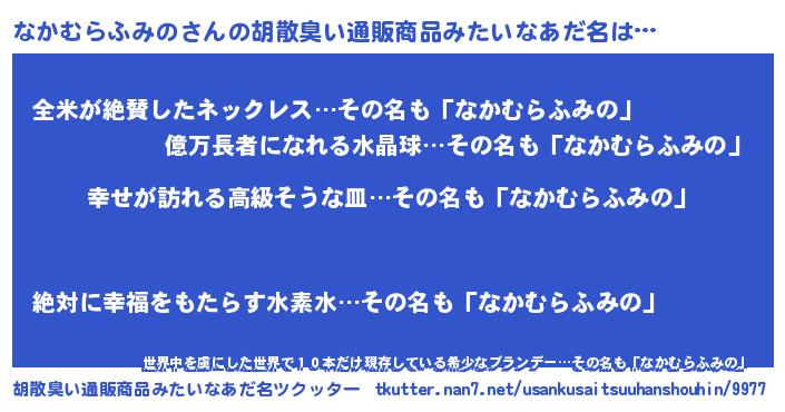 | 肩書あだ名 | 『なかむらふみの国家主席』 |