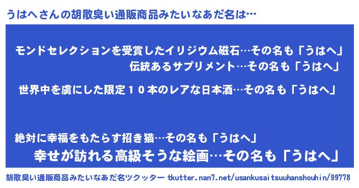 | 意味不明あだ名 | 『住所不定無職うはへ(14歳)』 |